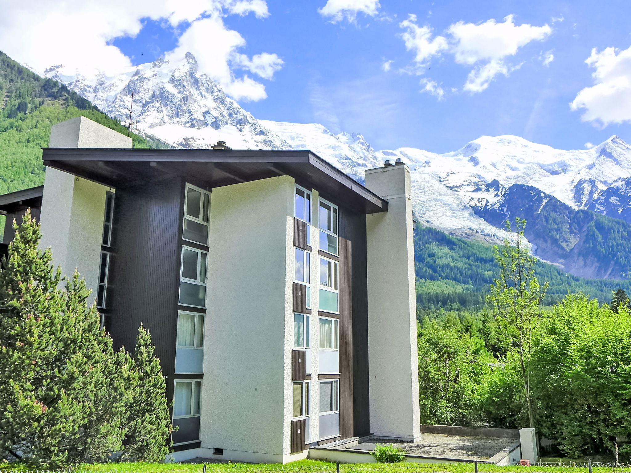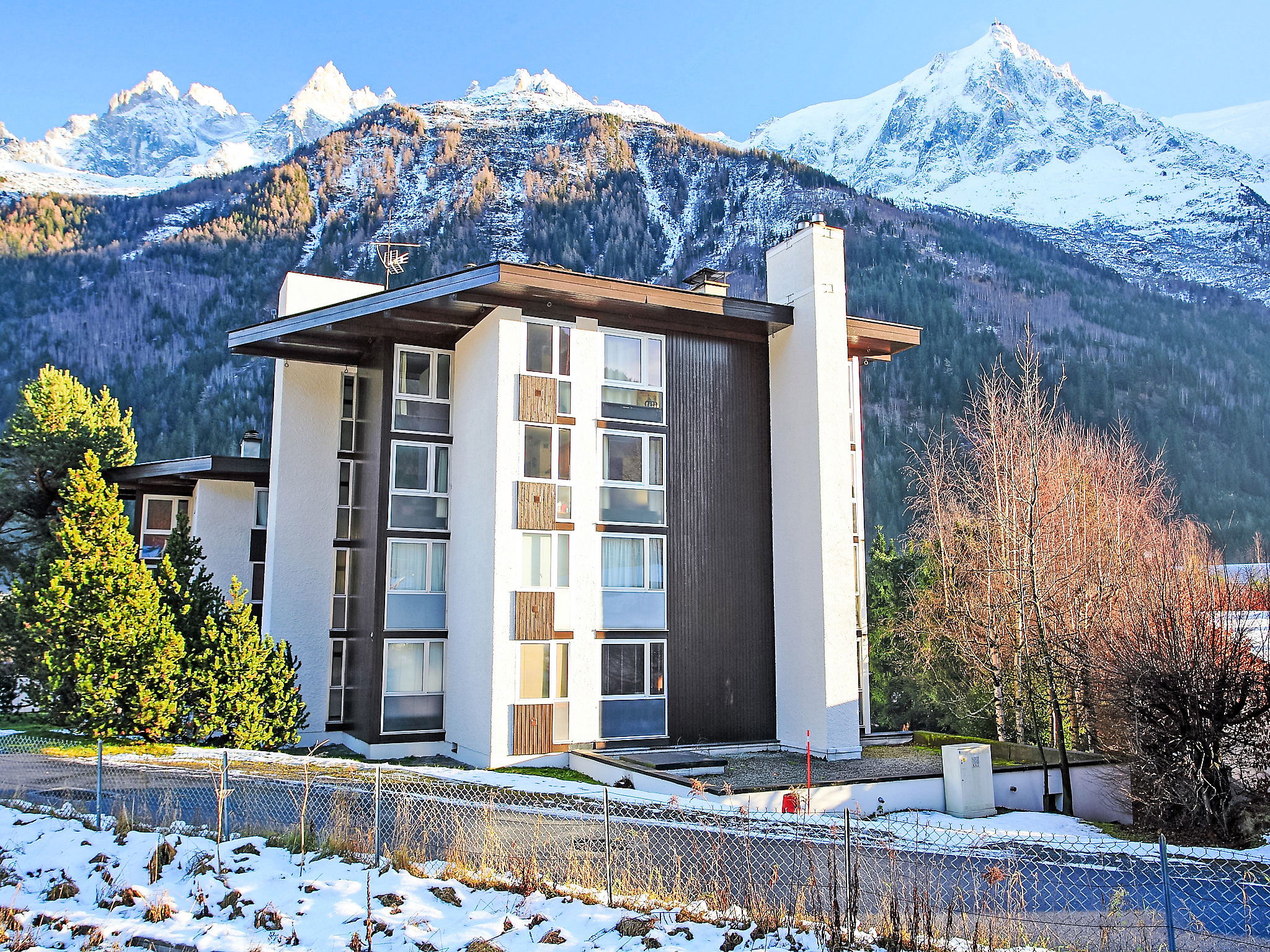 Residence "Arve 1 et 2", 3 storeys. 700 m from the centre. In the complex: lift, central heating system, heating available only from 01.Dec. - 30.Apr.. Parking at the house. Shop 800 m, shopping centre 1 km, restaurant 500 m, bus stop 300 m, railway station "Chamonix Mont-Blanc" 1.4 km. Golf course (18 hole) 4.5 km, sports centre 2 km, skisport facilities 1.3 km, ski school 1.1 km, cross country ski track 2 km. Nearby attractions: Téléphérique de l'Aiguille du Midi 950 m, Train du Montenvers Mer de Glace 1.5 km. Please note: the photograph shows a typical example. Additional accommodations can be booked.