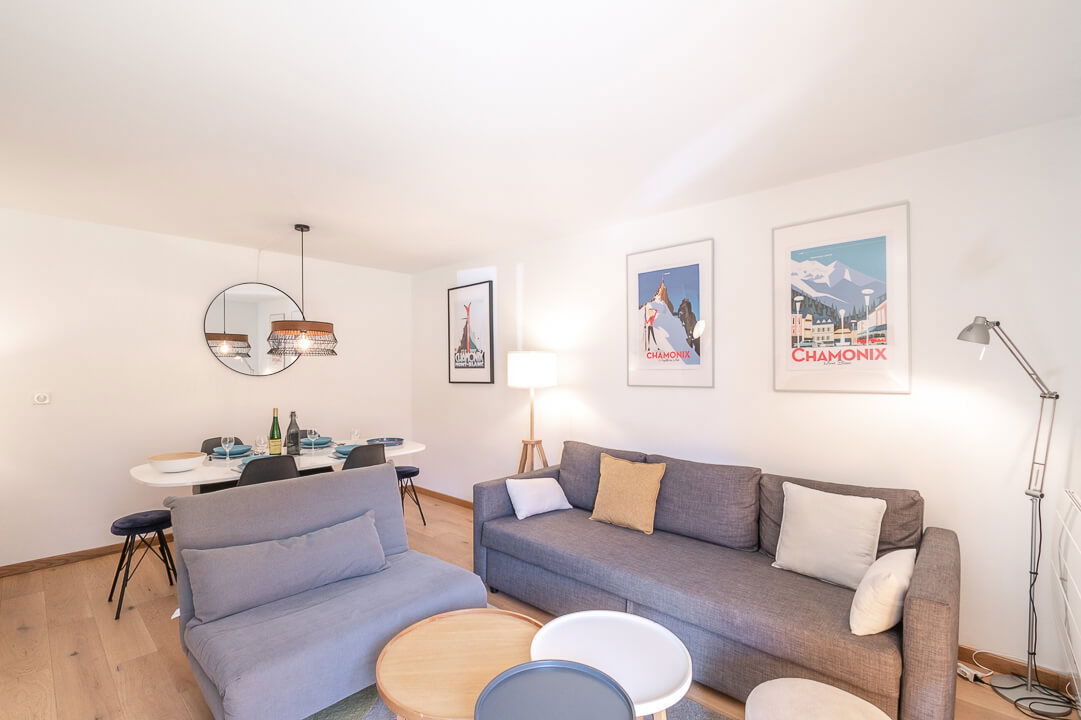 Very nice 40sqm apartment for 2/4 persons. Located on the ground floor of Lyret 2 residence with lift and in the heart of Chamonix.