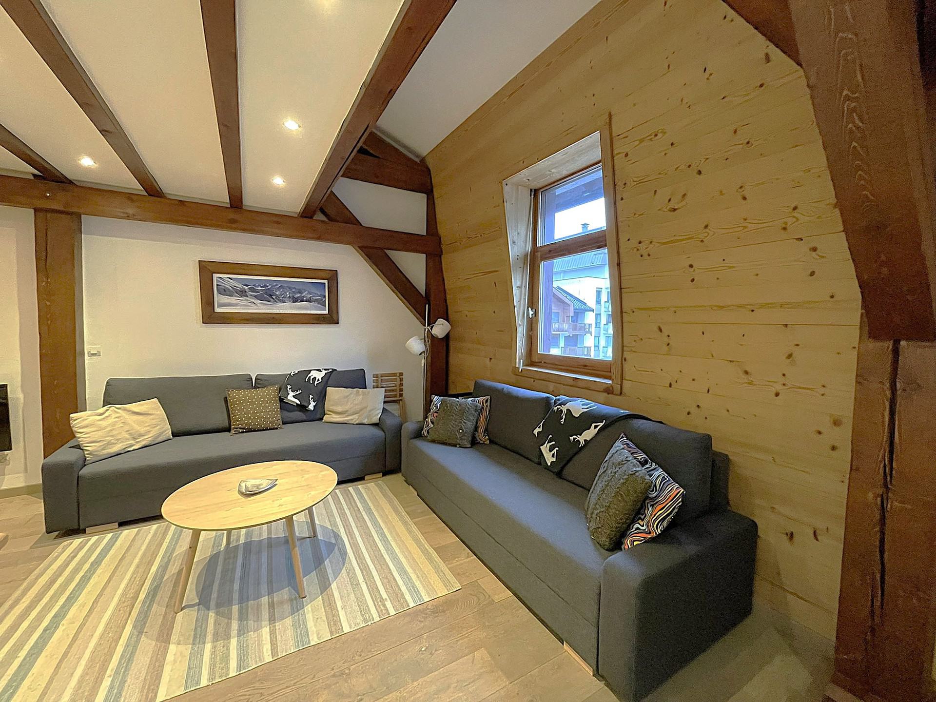 Beautiful 65sqm duplex apartment, classified 2 stars, under the roof for 6 people. Located on the 3rd floor, without elevator, of a residence, near the cable car of the Aiguille du Midi.