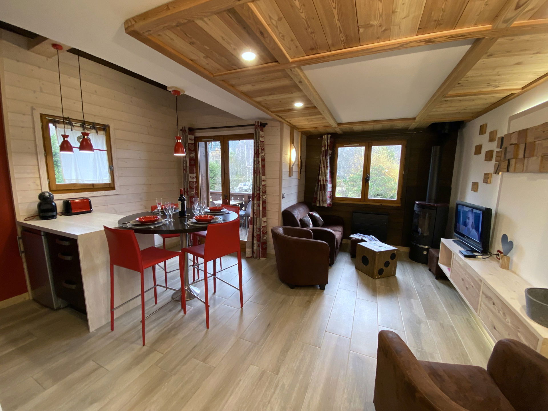 Beautiful duplex apartment of 45sqm classified 3 stars, for 4 people. Located on the 1st floor without elevator of a chalet in the residential area of the Bois, 5mn driving from the center of Chamonix.