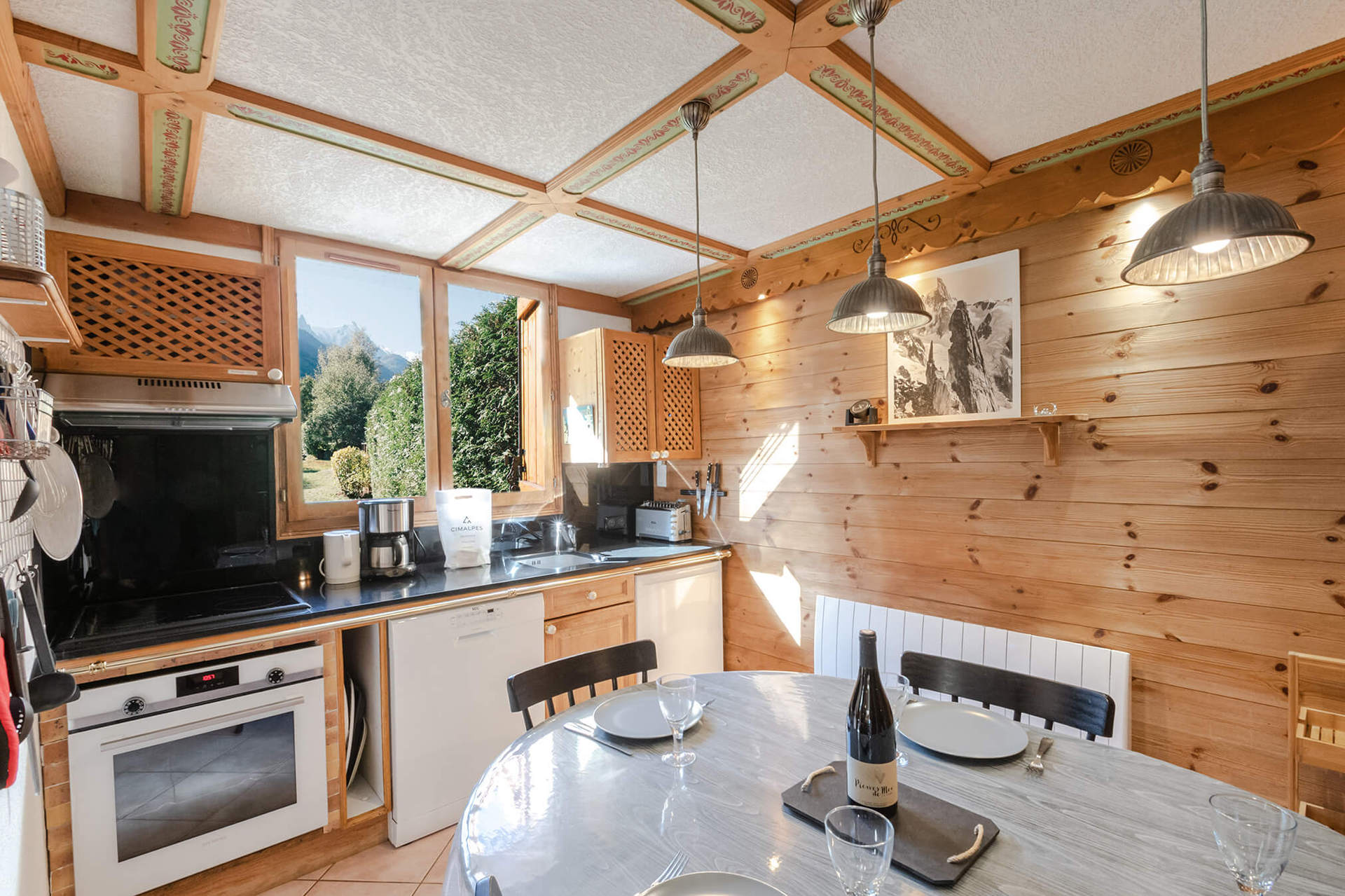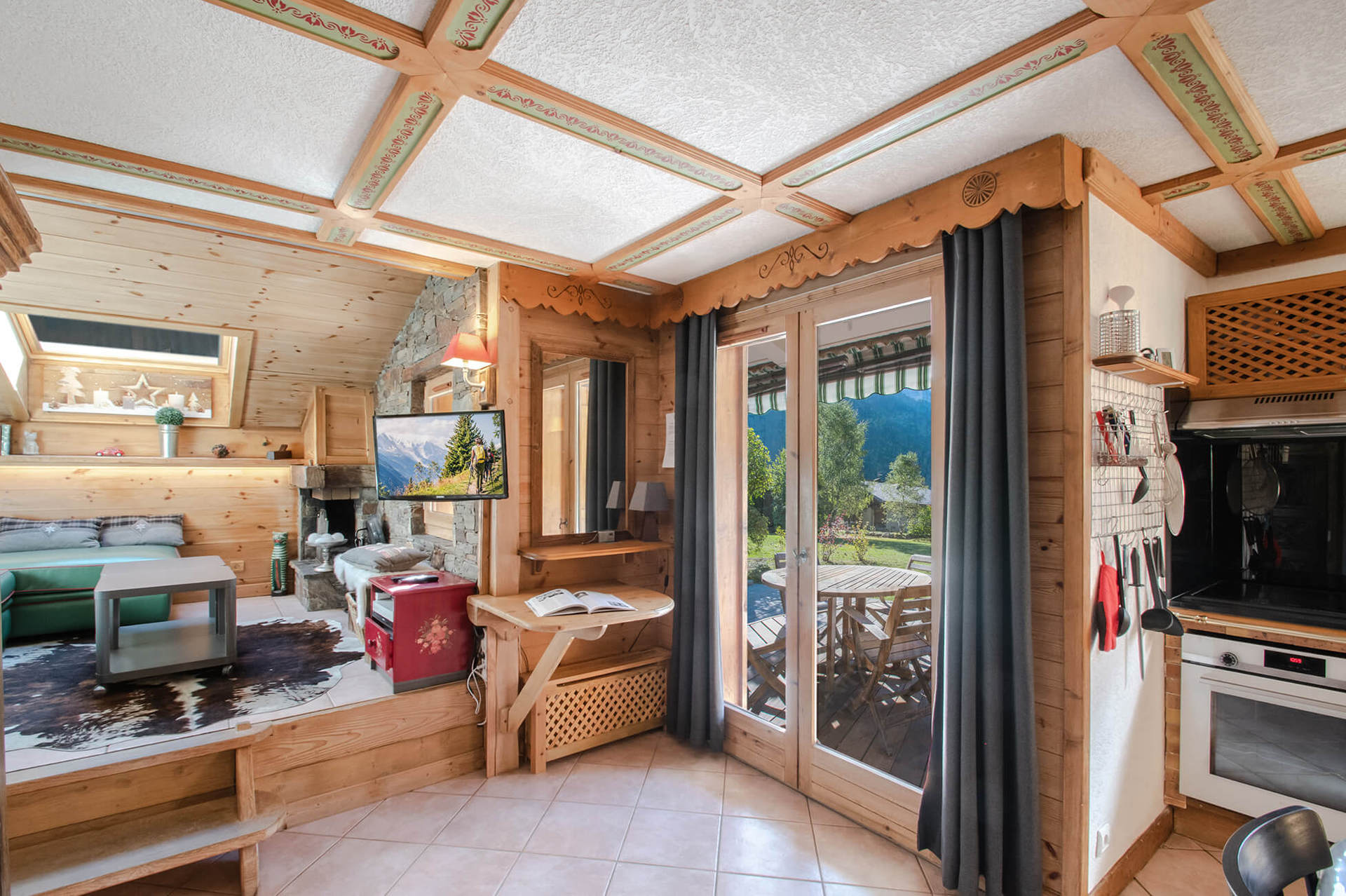 Charming souplex apartment of 68sqm classified 3 stars, for 4 people located on the ground floor of a large chalet in Les Bois hamlet, at 5 minutes driving from Chamonix.