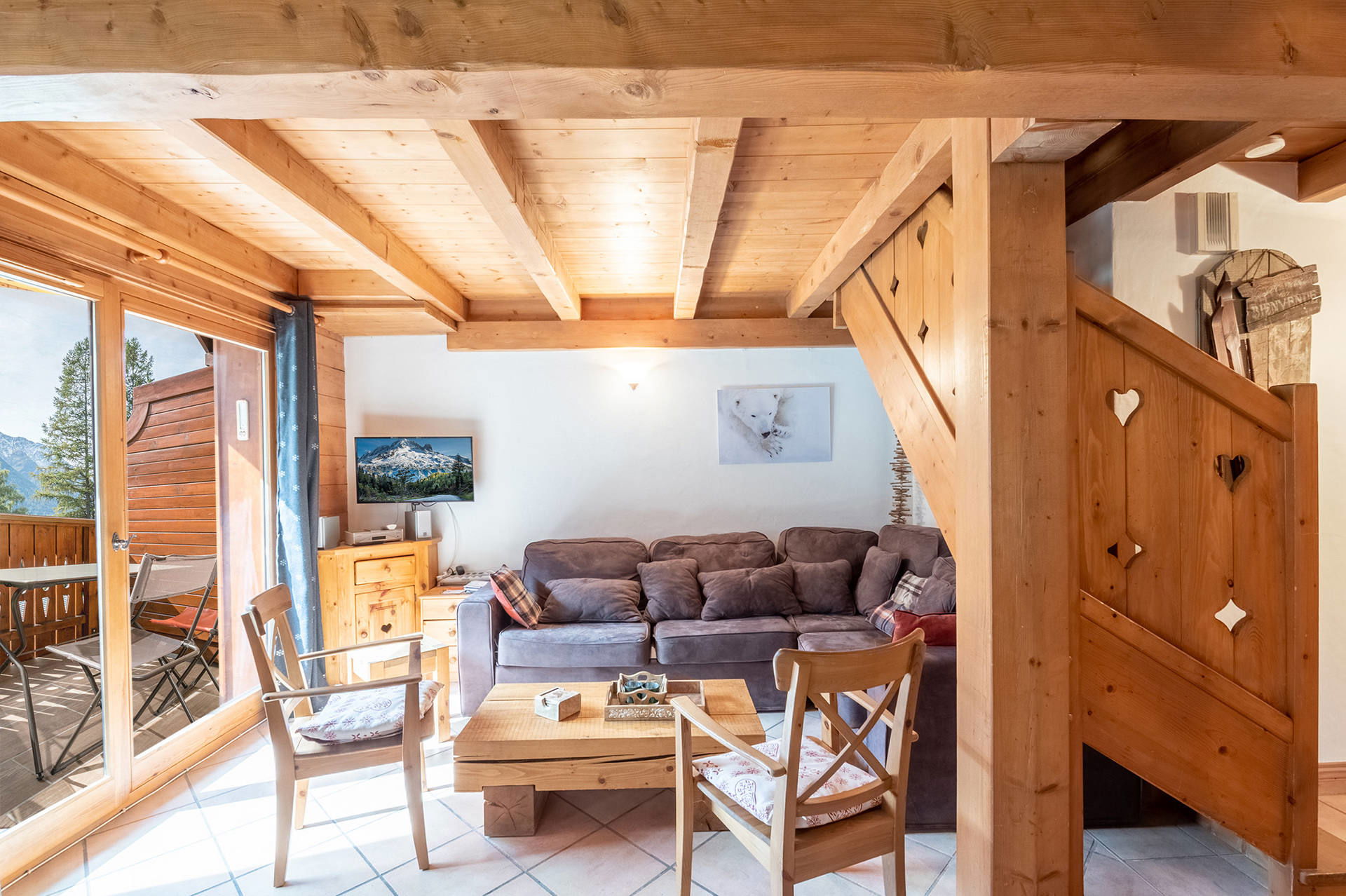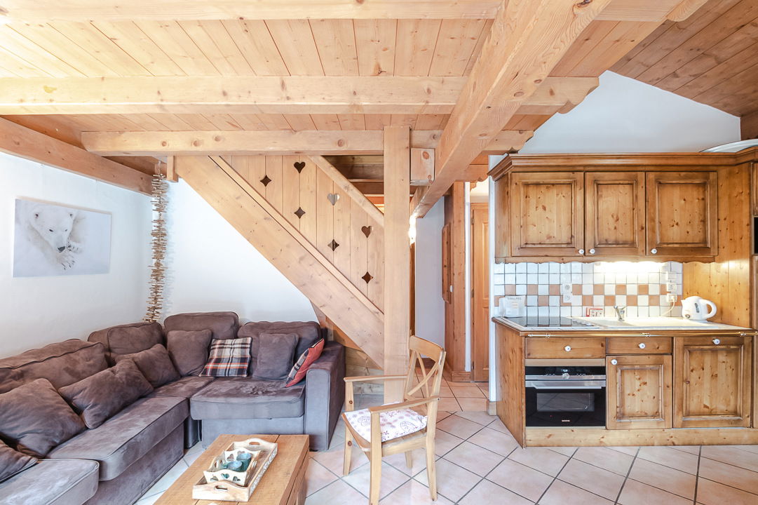 Beautiful 84sqm duplex apartment, classifed 3 stars, can welcome up to 8 people in its 3 bedrooms. South facing it is located on the 1st and 2nd floor of a chalet and at 750 meters from the center of Chamonix.