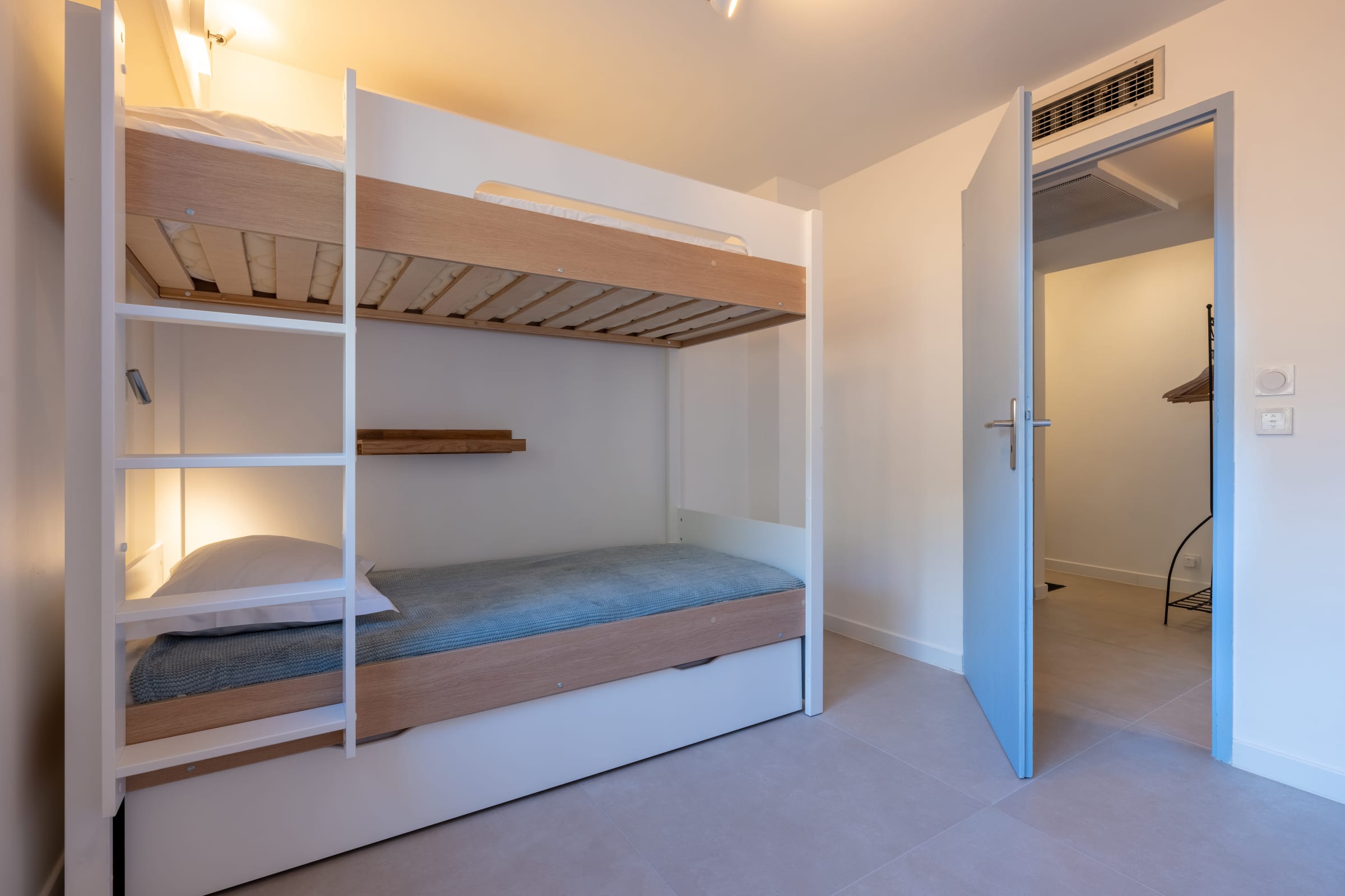 - bedroom with two single bunk beds and a single pull-out bed,