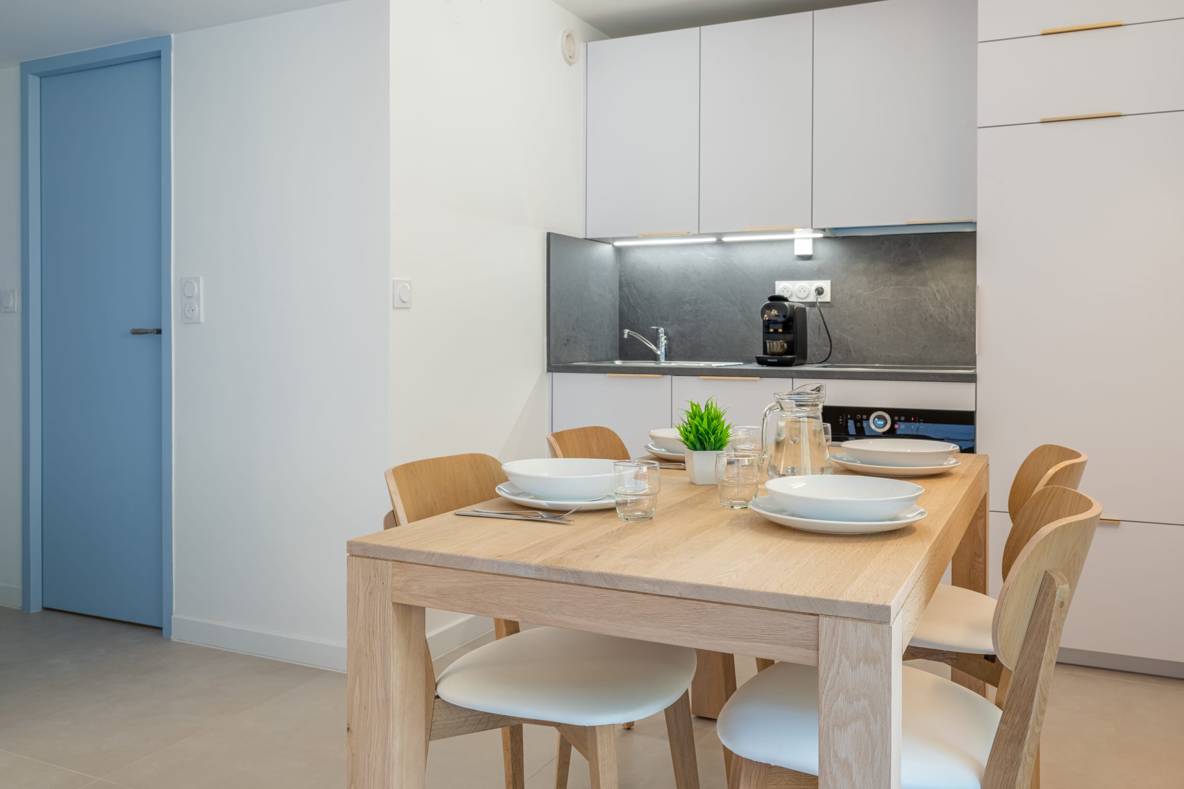 - a fully-equipped open kitchen (coffee machine, toaster, blender, kettle, oven, microwave, hob, dishwasher, fridge),