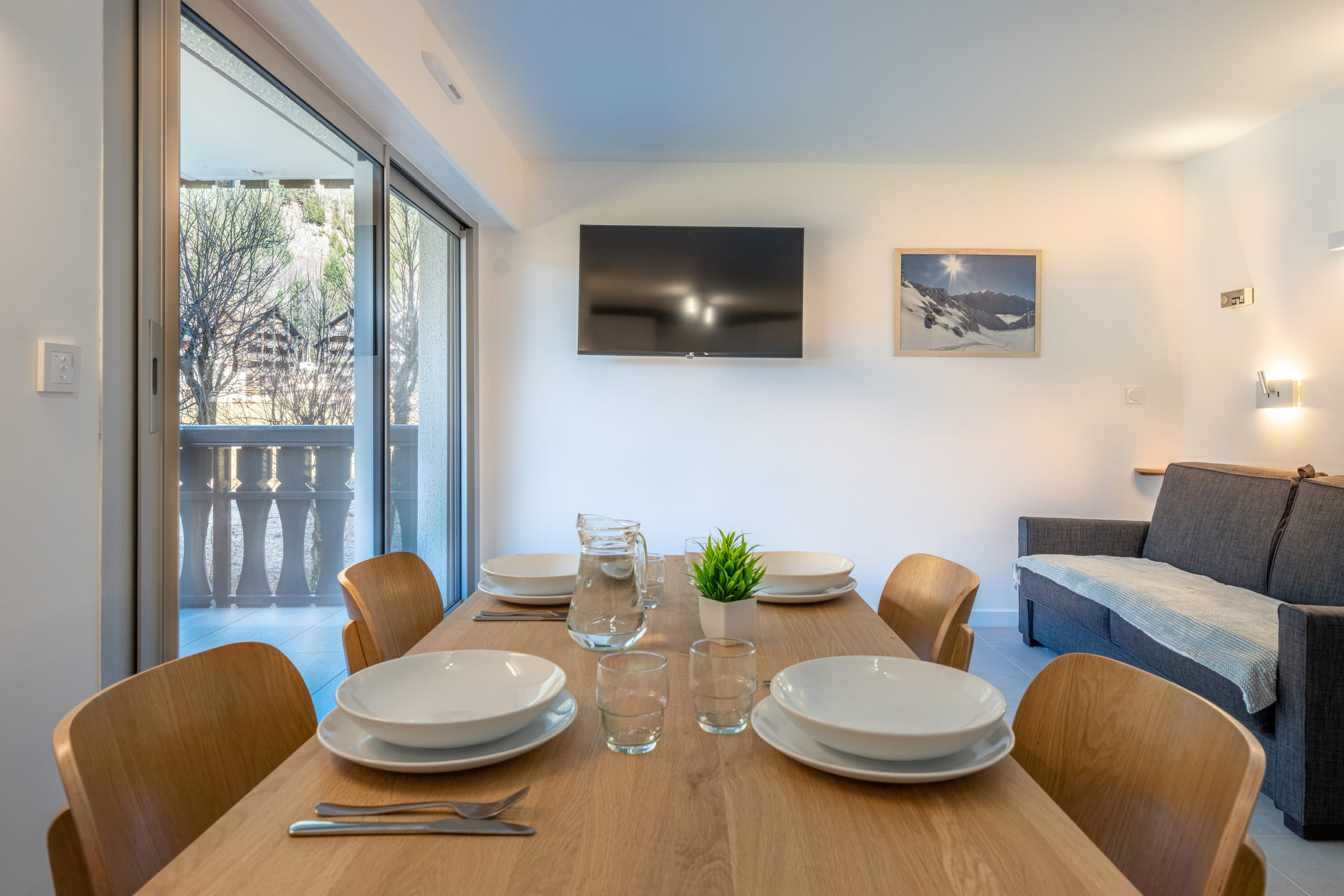 - an 8 m² balcony with a small table and a view of the Champ de Savoy and the mountains,