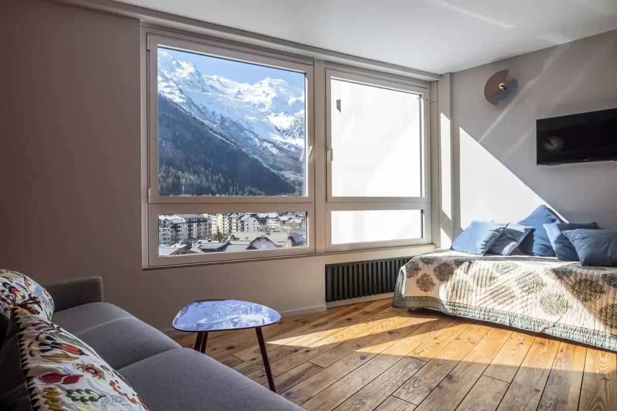 This spacious studio will be ideal for a stay in the heart of Chamonix with its incredible view of Mont Blanc.