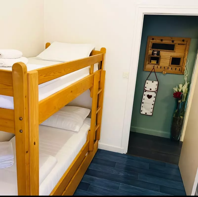 During your stay, you will have at your disposal: 1 sofa bed, 1 bunk bed, 1 super cozy double bed on the mezzanine, Parking (outdoors - free placement and subject to availability), Dishwasher, Washing machine, Senseo coffee machine, Microwave, toaster, kettle, crepe maker, Toaster, kettle, baby bath.