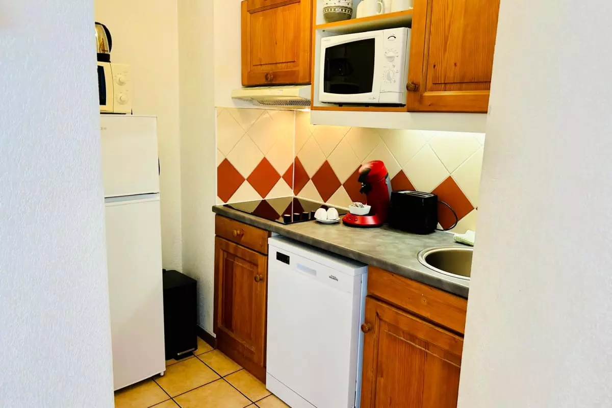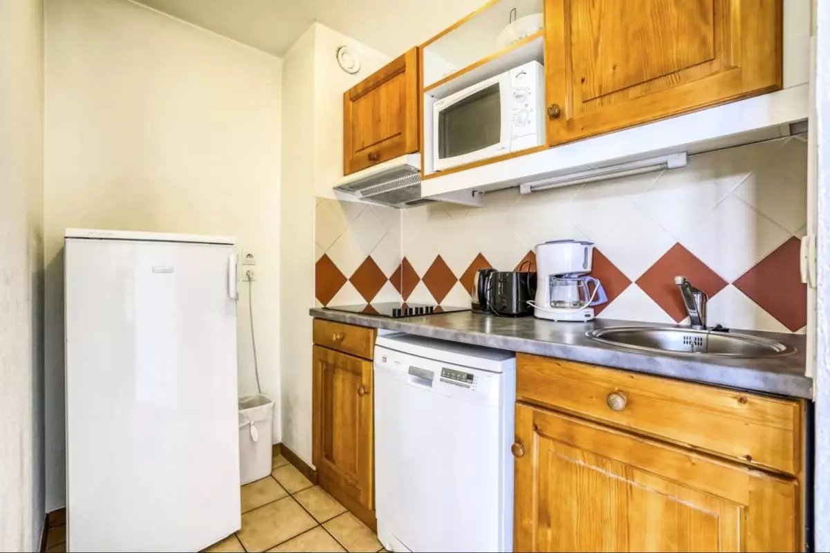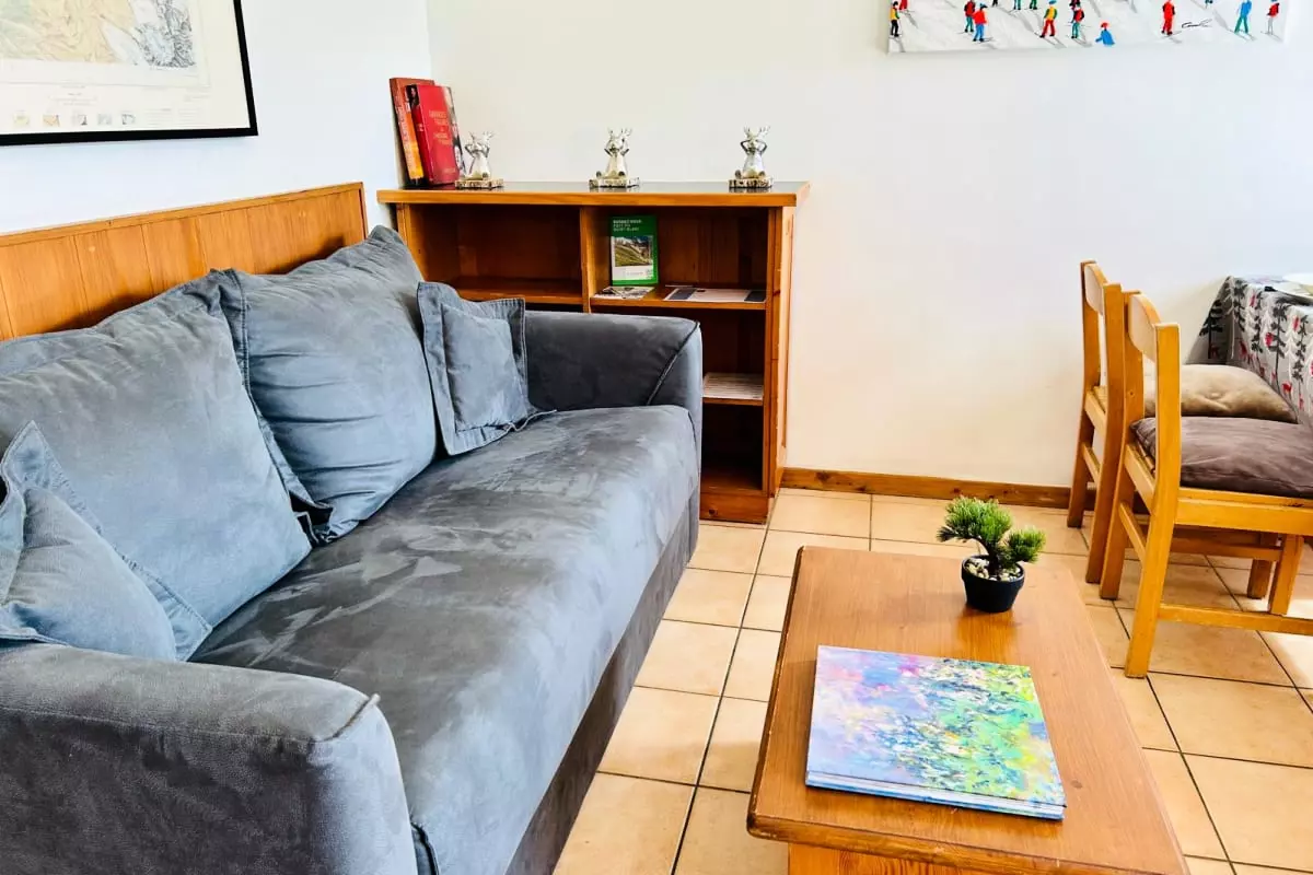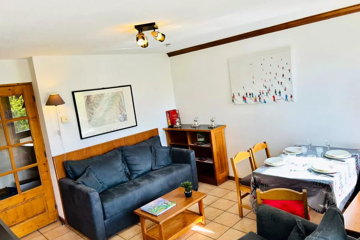 Able to accommodate 5 people, the accommodation is spacious, warm and will be perfect for tourist holidays with friends or family. It is composed of a bedroom with a double bed and 2 single beds in the living room (the sofa, the bed located below it and the armchair which folds out), a bathroom and a pleasant living room. During your stay, you can enjoy the BALCONY to admire the magnificent view of MONT BLANC and enjoy a sunny day. In addition to all this, you will have at your disposal: Television, Dishwasher, Heating, Elevator, Coffee machine, Vacuum cleaner, Oven, Hot water, Iron and ski locker.