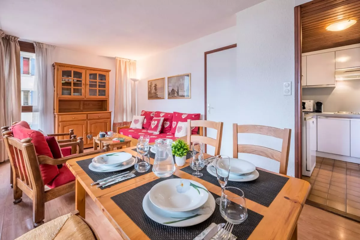 From the moment you arrive, you'll be charmed by the warm atmosphere of this apartment, bathed in natural light thanks to its large windows and spacious balcony. The balcony, equipped with a table for four, offers breathtaking views of the surrounding mountains, a perfect setting for breakfast or relaxing outdoors.