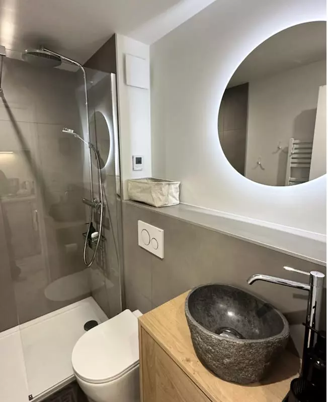 You will particularly appreciate its location, in the middle of a pedestrian and shopping street, you will enjoy a real immersion in the heart of Chamonix life thanks to the hyper-center location: restaurants, shops, bars, museum, tourist office, guide company, activities and access to the Brevent-Flégère area 10 minutes away on foot (a nice climb to warm up). The breathtaking view of Mont-Blanc at the foot of the apartment will leave you with beautiful memories.