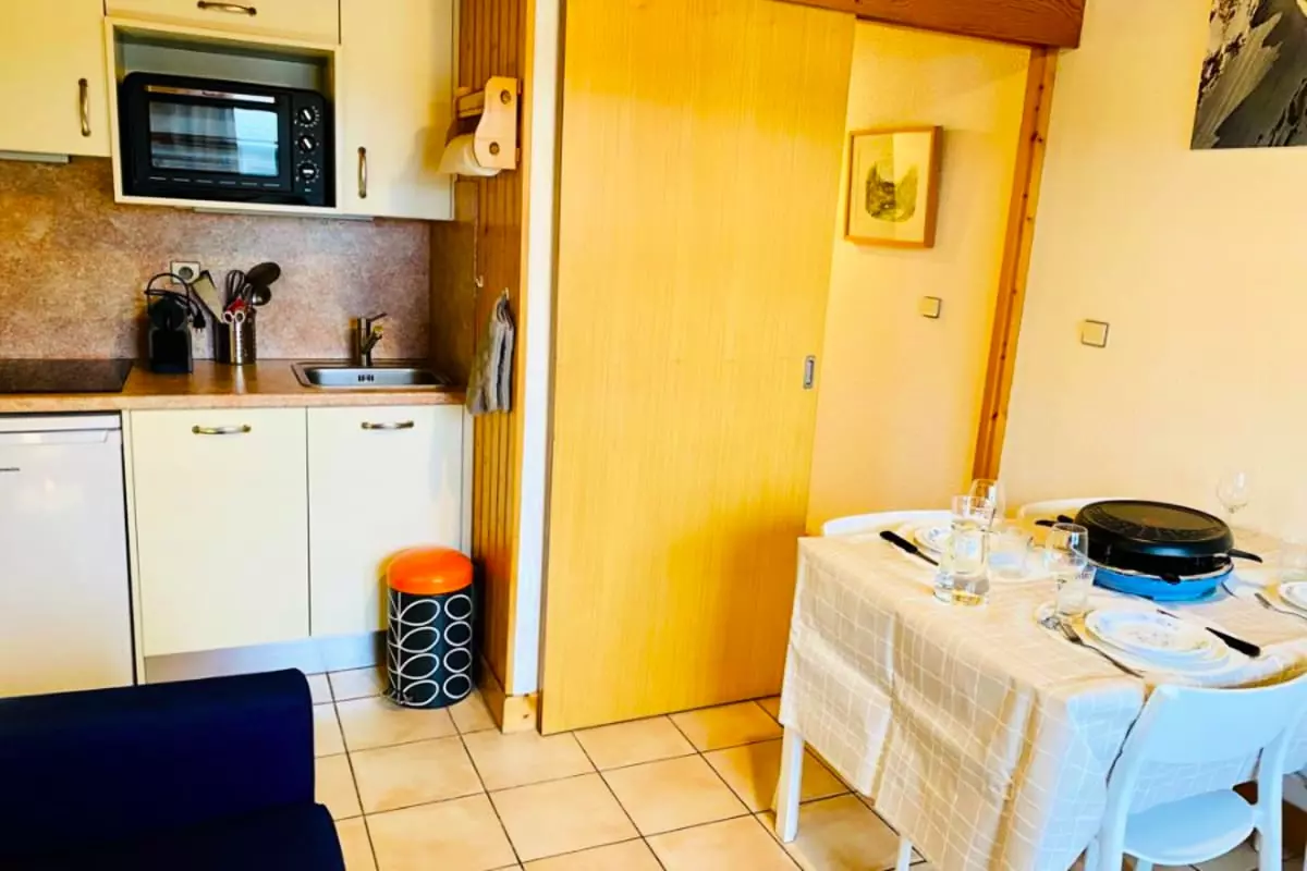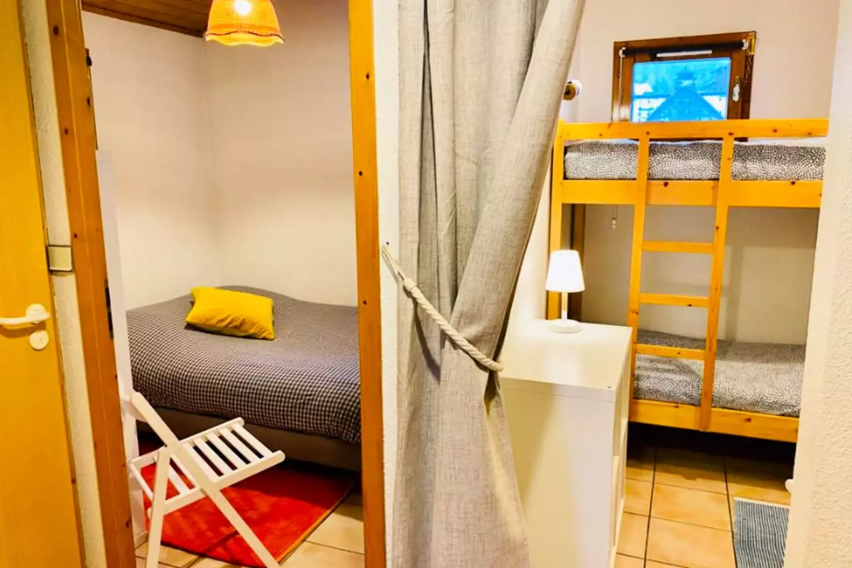 ArrayThe accommodation consists of 2 bedrooms, one of which is a cabin-style room with just a curtain, 1 bathroom and can accommodate up to 4 people. It is ideally located 5 minutes from the Savoy ski lift and 15 minutes on foot from the Brevent cable cars.