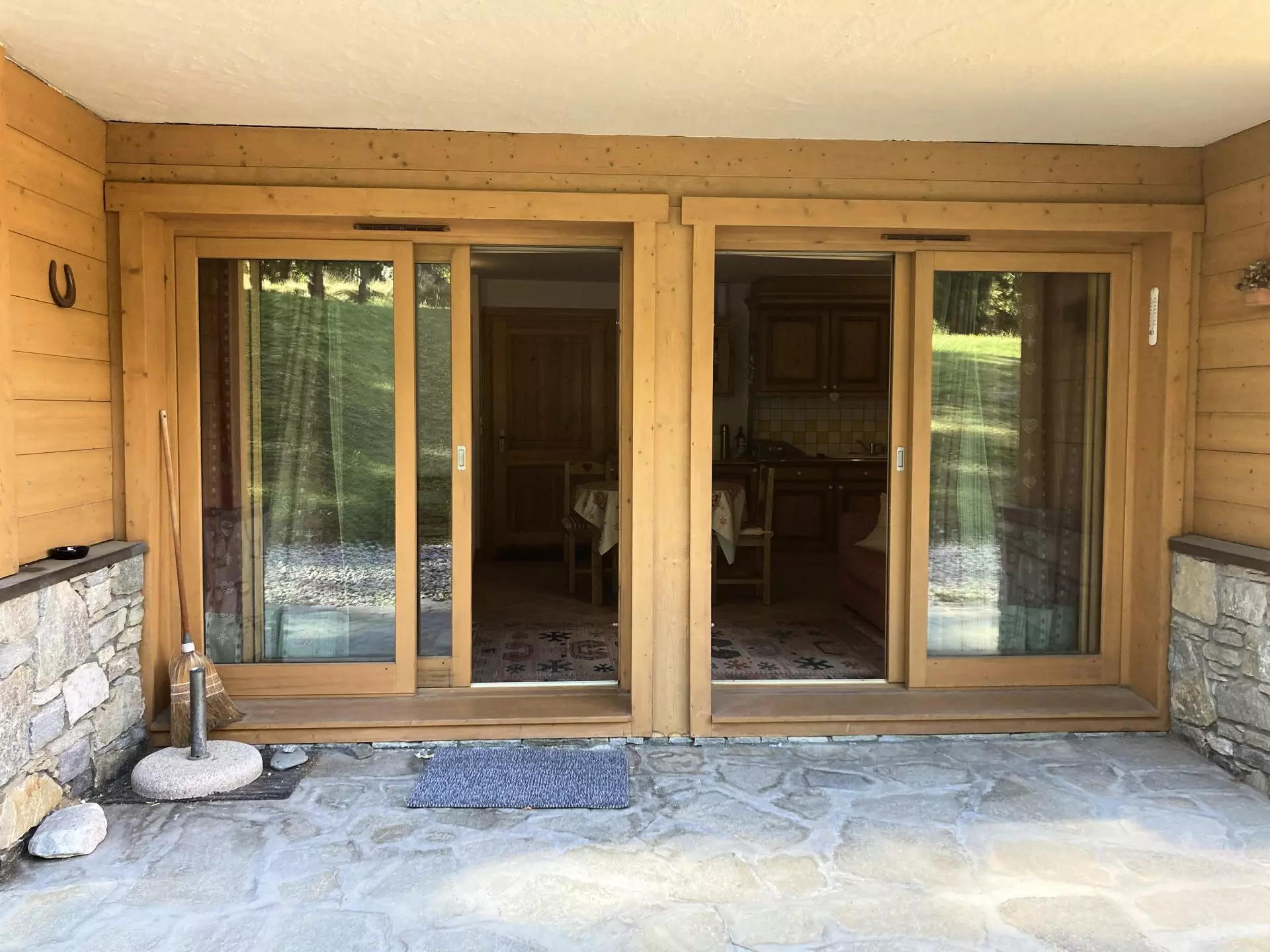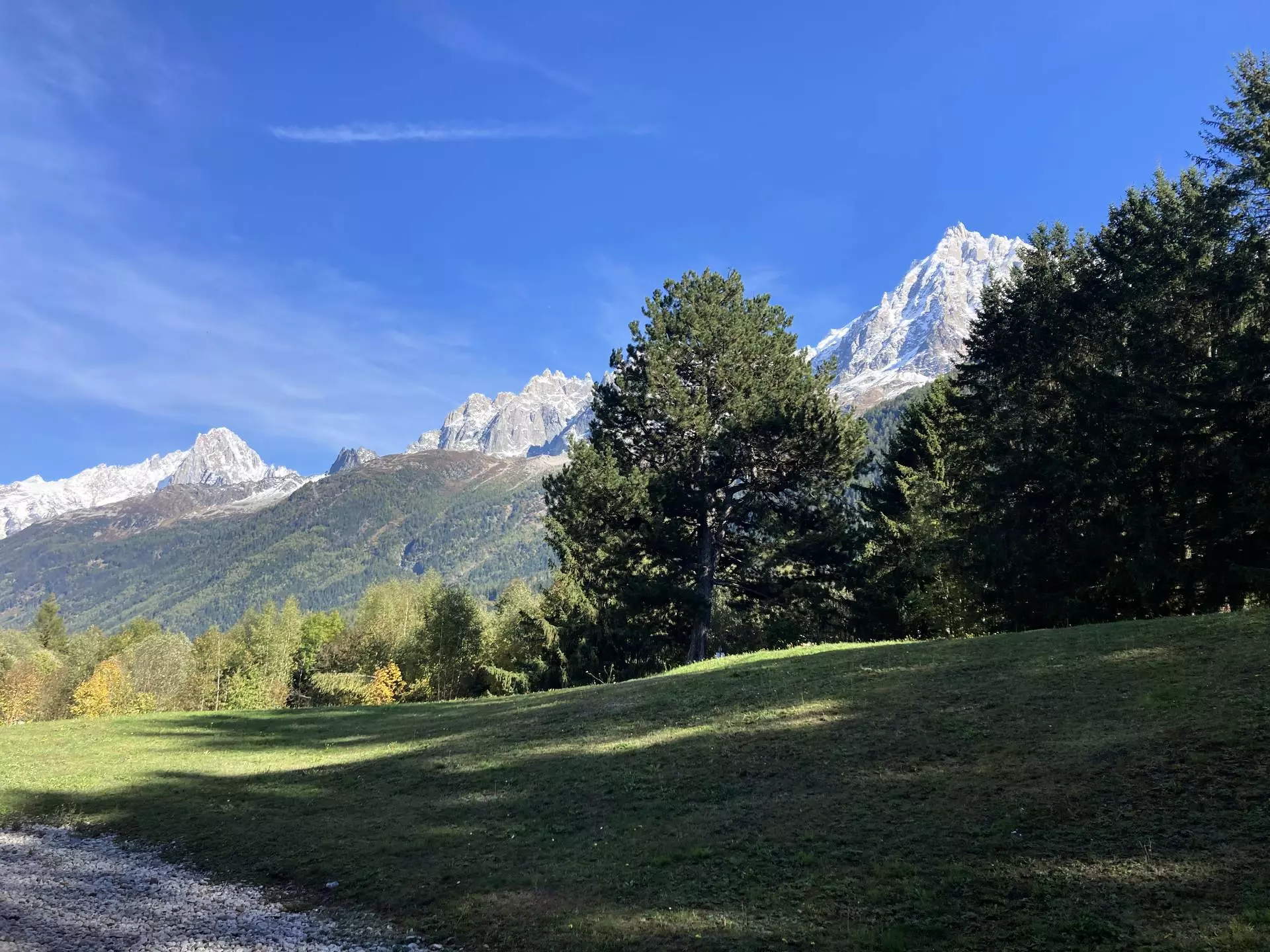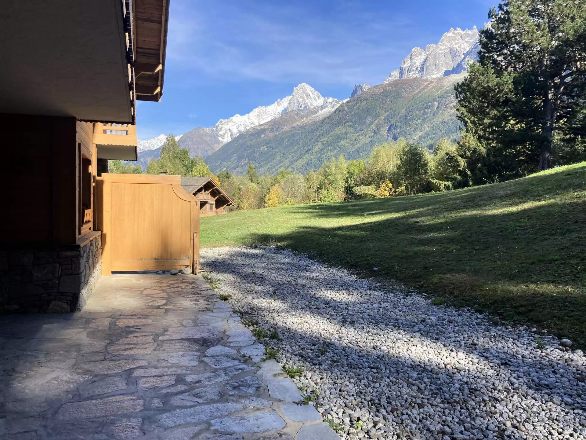 The apartment is on the ground floor. It has a terrace with a view of the Mont Blanc range.