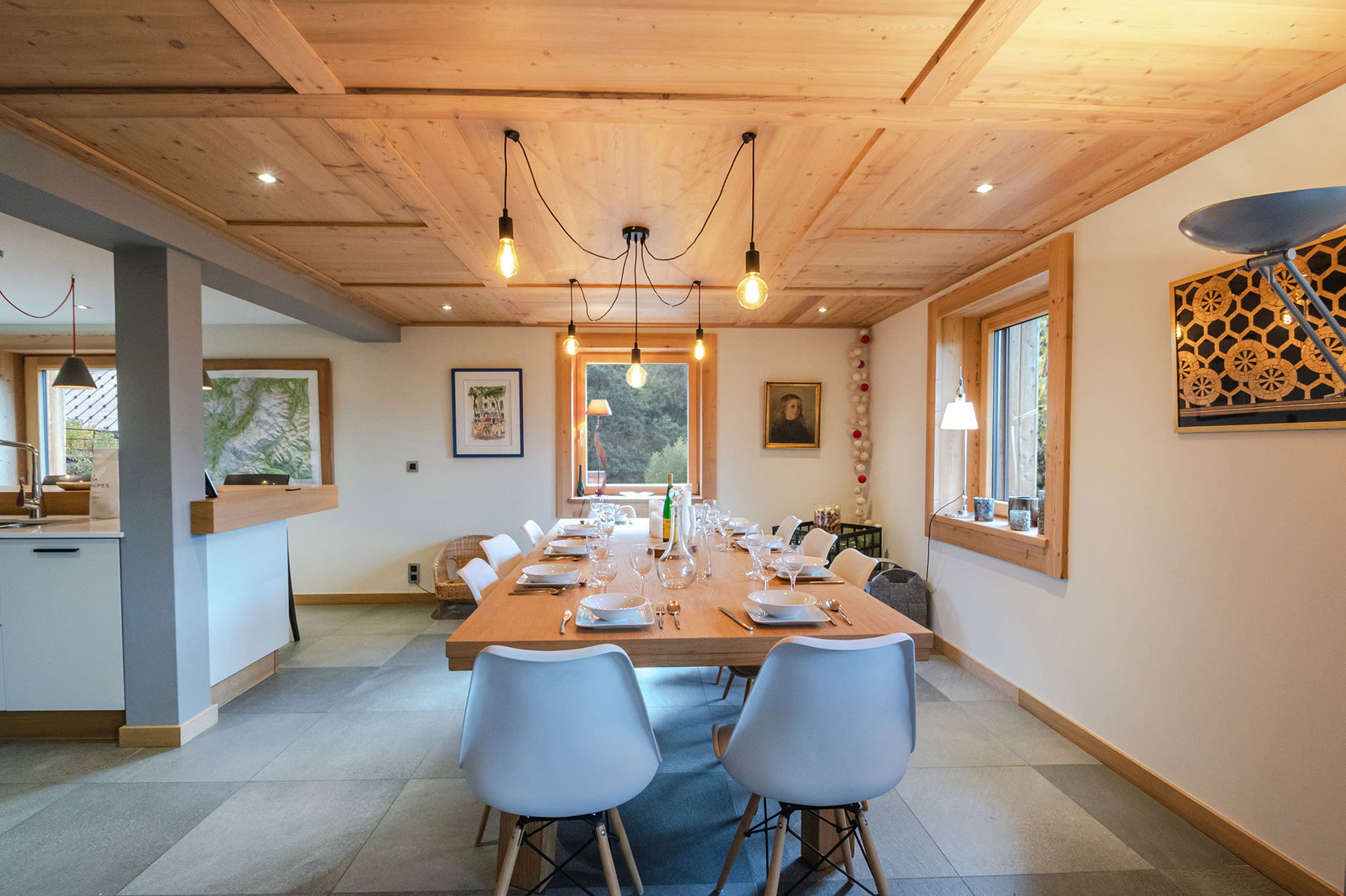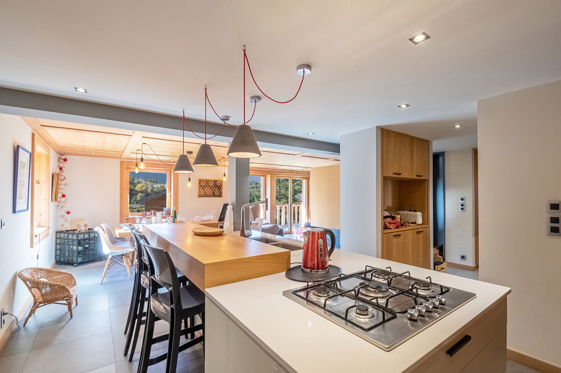 - Open fitted kitchen (dishwasher, oven, microwave, gas hob 5 burners, fridge, freezer, Italian coffee machine (Bialetti), toaster, kettle, Nespresso, fondue set and 2 raclette sets)