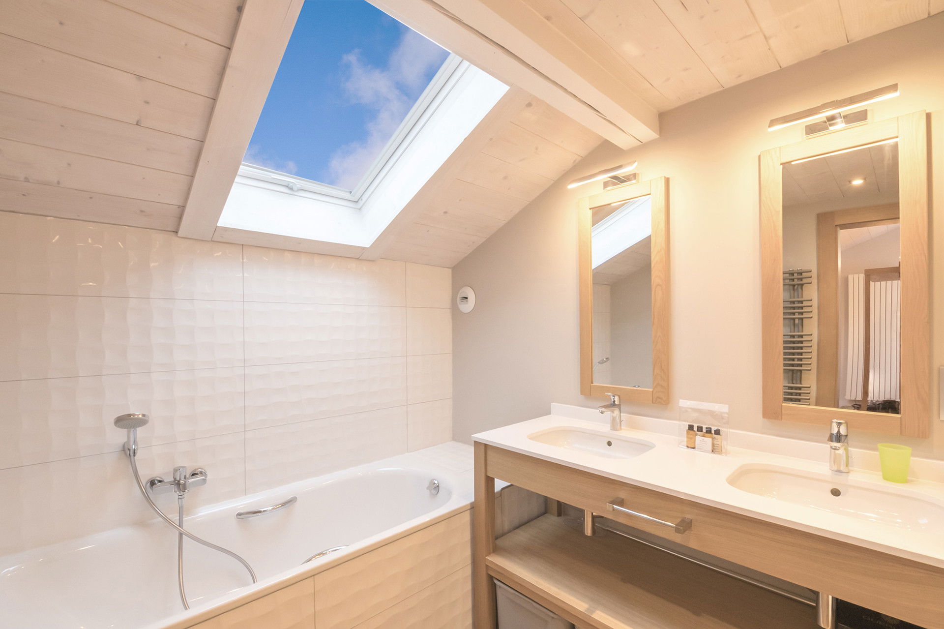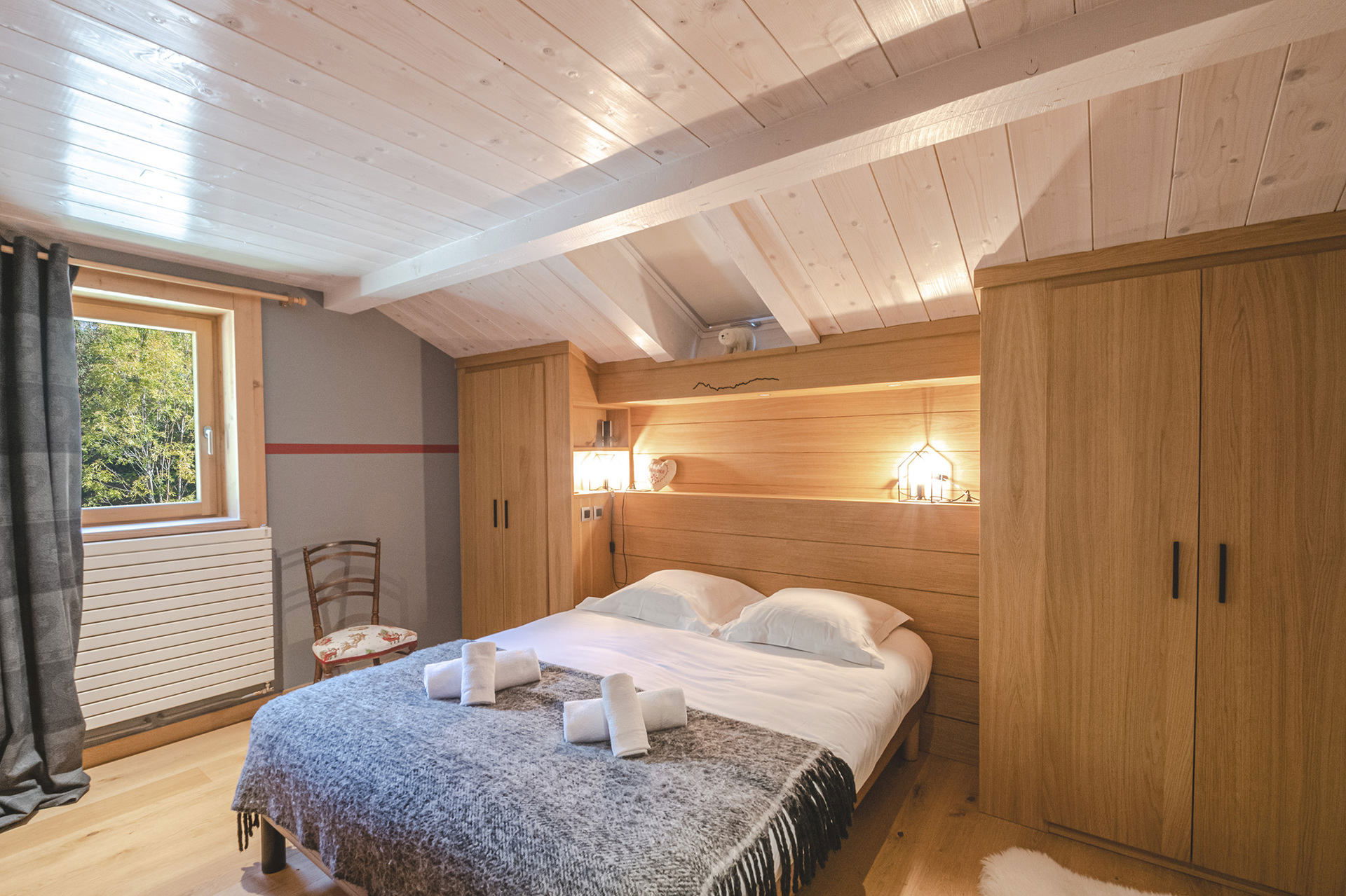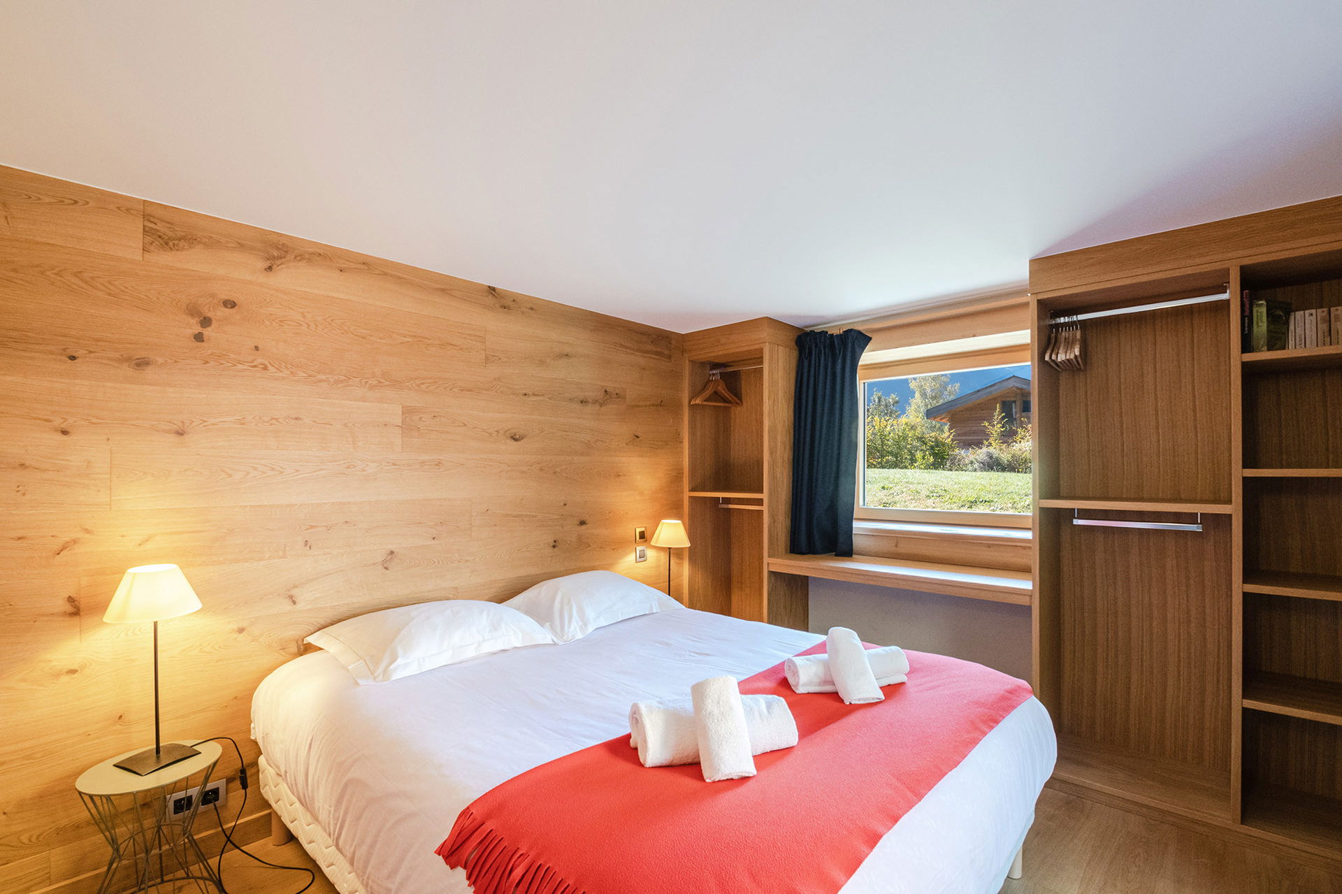 - Master bedroom : Double bed, sitting area, desk, TV, dressing room and bathroom (bath, shower, toilet) and balcony with view over the Mont-Blanc