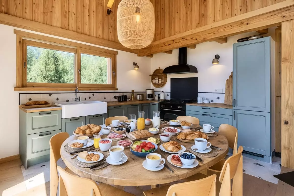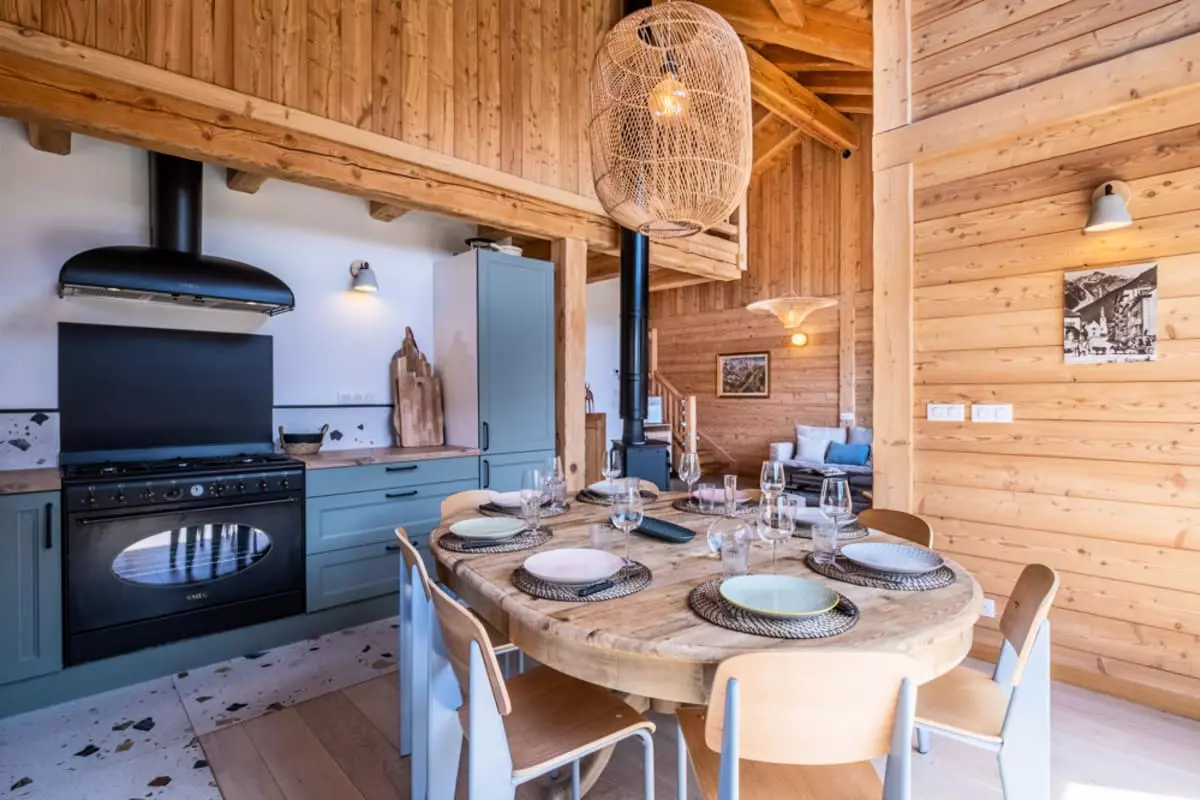 The chalet has 3 bedrooms, each with 3 double beds (160cm), a mezzanine with 1 double bed and 1 single bed, a bathroom, and 2 shower rooms, as well as several sinks. There's also a fully equipped kitchen with a dining area and a lovely lounge area where you can relax after a day of hiking. Ideal for 6-8 people.