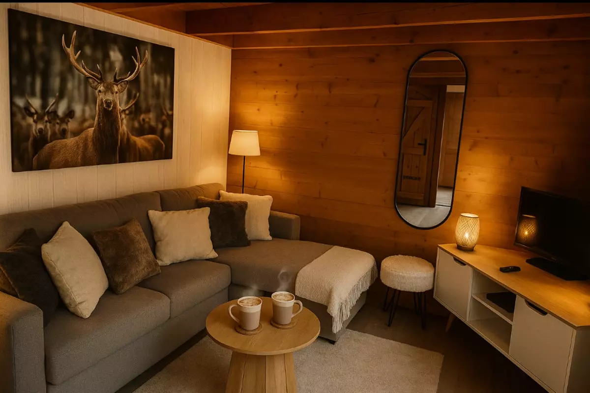 - a lounge area with a 140cm sofa bed to relax after a day of walking.
