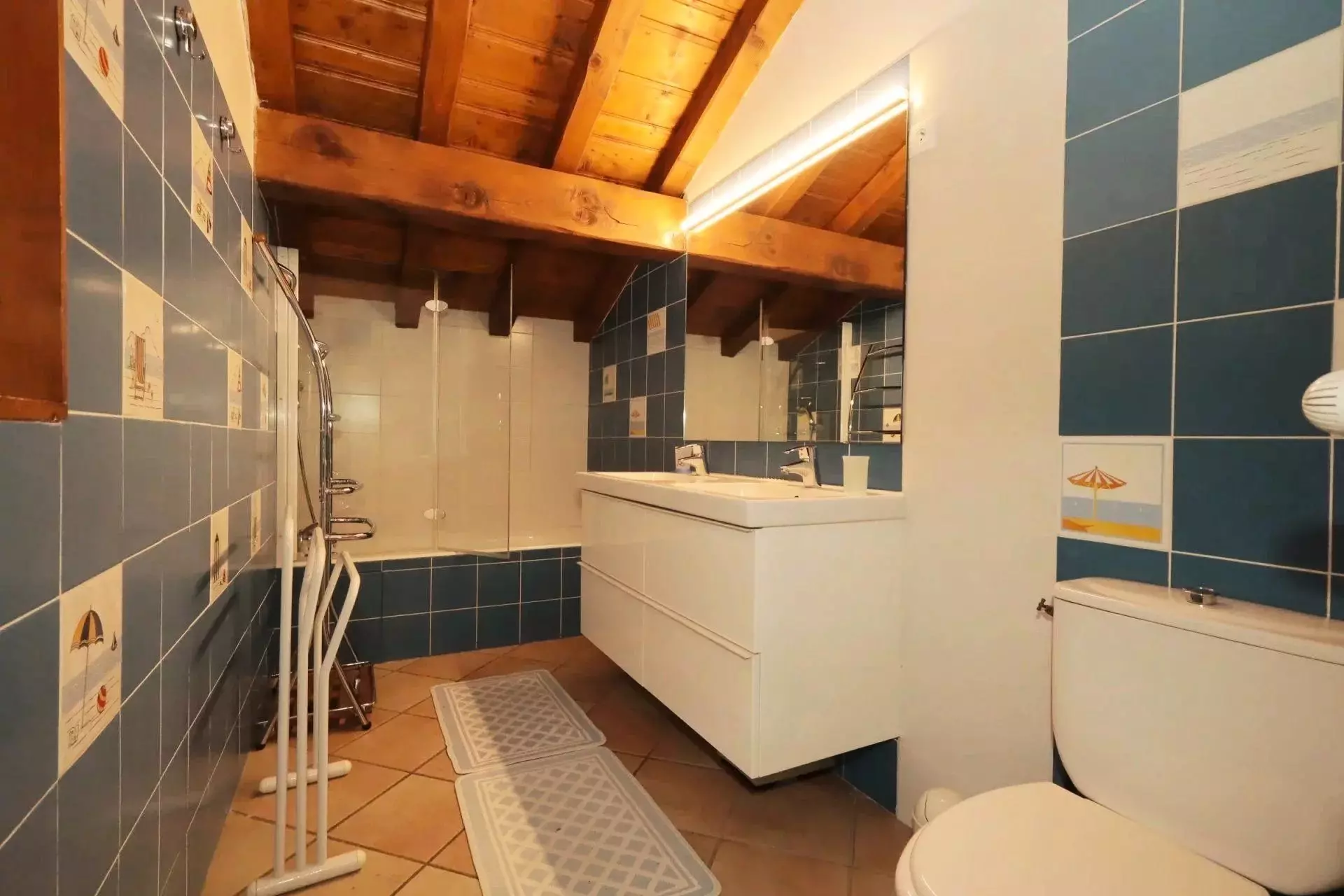 The chalet is on 3 half-levels and is located 1.3km from the village center and 2km from the ski lifts.